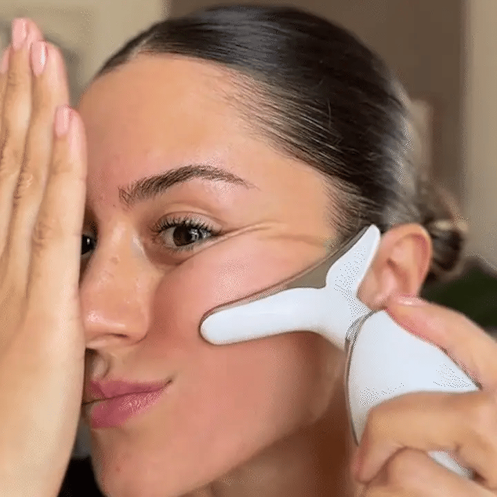 La vibración de alta frecuencia y el calor ligero favorecen el drenaje en mejillas y zona periorbitaria (evita contacto directo con el ojo), reduciendo la pesadez matutina.