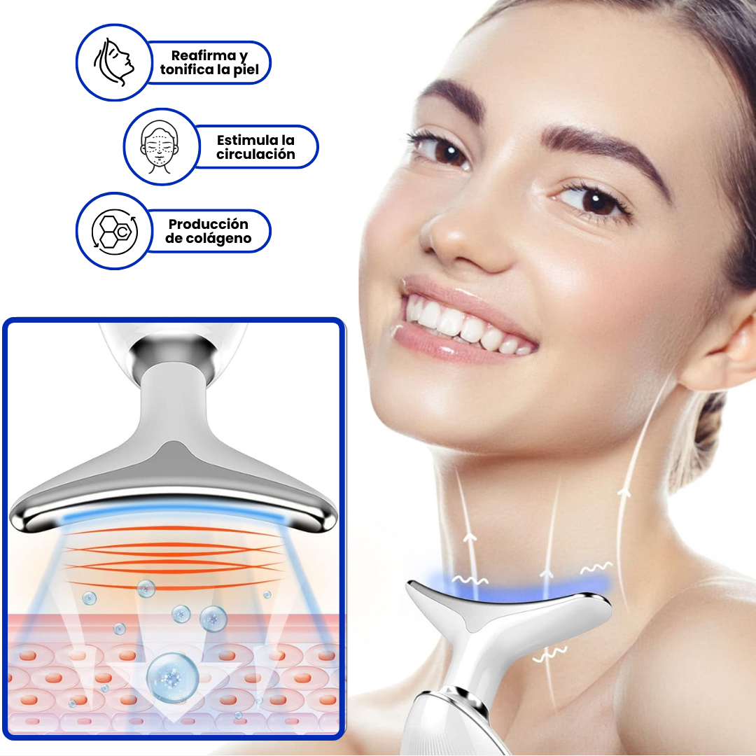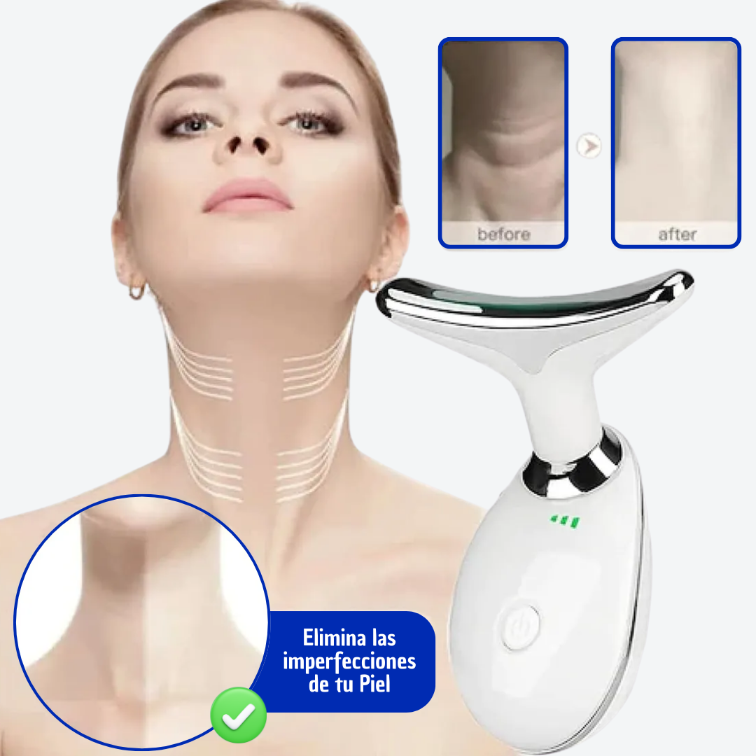 95% notaron un cuello más liso y menos línea con la combinación de masaje + calor + LED les ayudo a suavizar la apariencia de arrugas finas en el cuello.
